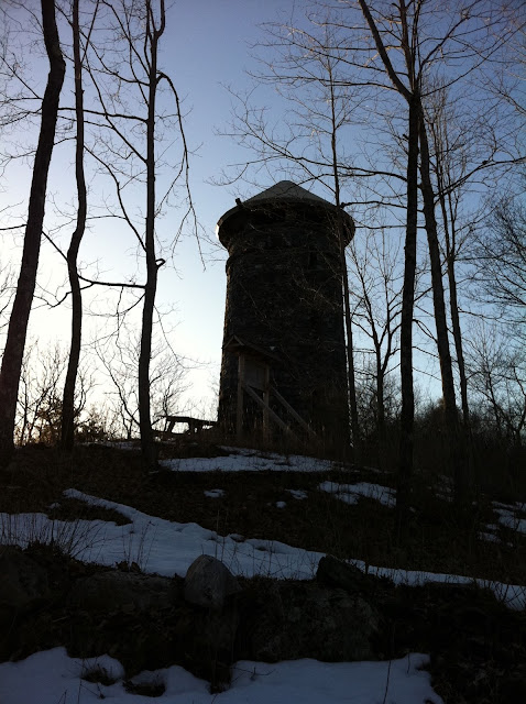 Directions: If you park right at the beginning of the park road, look for the sign for the Haystack Tower Loop Trail, to the right of the paved road. It is a yellow blazed trail. Where the yellow trail splits (yellow goes both straight and to the right), stay straight. Where the yellow trail splits again (yellow goes both left and straight), stay straight. Arrive at the tower. You can walk up the tower any time of year. It is a nice sturdy stone tower (I'm not fond of climbing metal/wood fire towers). There are mountain views from the top of the tower. There is an interesting sign next to the fire tower about someone who wanted to prove that the Encyclopedia at the time was incorrect in stating that there were no peaks in CT above 1,000 feet.