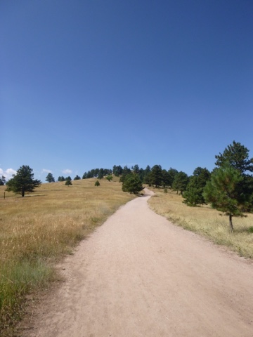 Nice hike with views of Denver, Red Rocks, mountains, and meadows. This trail gets a lot of use both by hikers, dog walkers, and bicyclists. It is rated difficult in the book. It has a long steady climb uphill, aided by switchbacks. There is a lot of sun exposure. This is rattlesnake territory. This is the second hike we've been on in Colorado where a bicyclist has warned us about a rattlesnake on the trail. We never saw any.