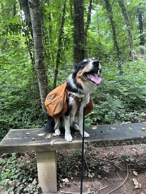 Still not hiking much due to the daily forecast of rain and thunderstorms. I ignored the forecast and went hiking anyways (no rain, no thunderstorms). We stayed local though. The NPS was at the trailhead with their bear education booth. We stopped by and asked them questions about how to know when to use bear spray. It was really interesting to talk to them - so much to learn. They also had a bear skin on their table - so of course I had to pet it. It was softer than I was expecting. No bears on the trail today, but I did see one in the street in front of my house when I went out to pick cucumbers from my garden. We found a couple new down trees to report.